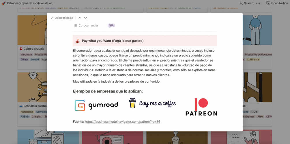 Base de datos de patrones de modelos de negocio